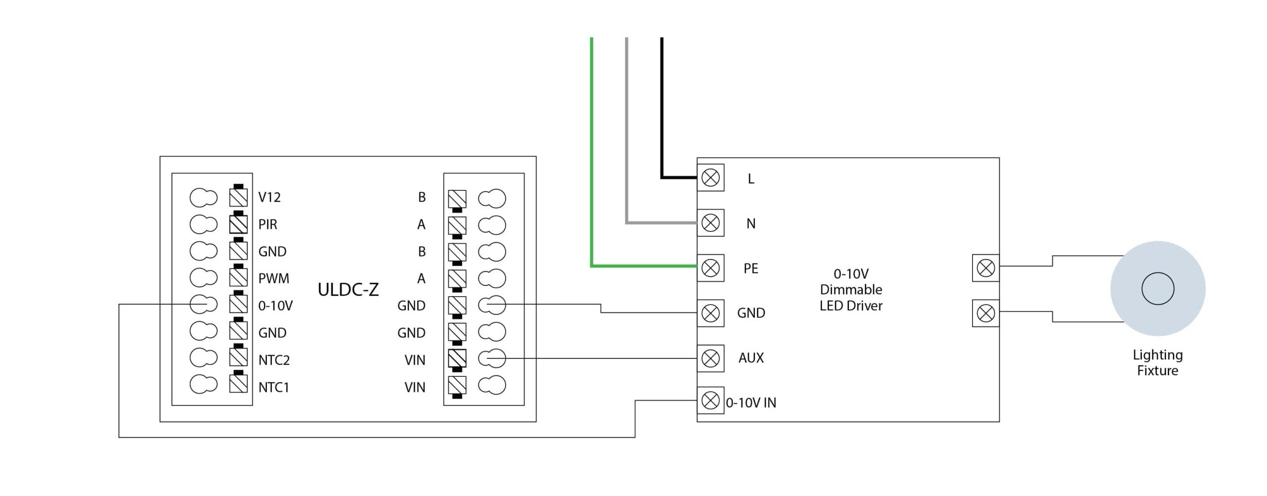The ULDC-Z is a wireless load controller for lighting fixtures with LED drivers. It is wirelessly controlled from a wall mounted control unit. The ULDC-Z offers 0 to 10VDC dimming on the conventional AC lighting circuits. The overall system does not require a conventional dimming switch to be present on the wall, instead the wall mounted unit controls each ULDC-Z load controller individually, keeping the switched lighting circuit available for non dimmable fixtures.