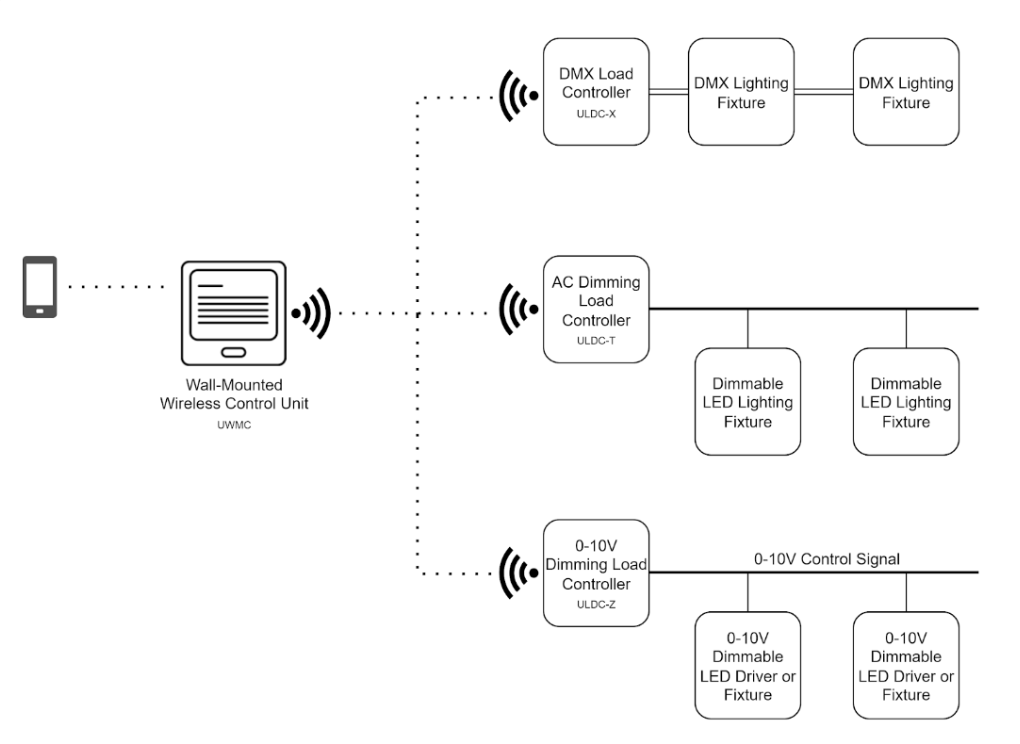 Wall mounted lighting controller for LED lighting applications that enables control of the fixtures for on / off or dimming functions. It replaces a double gang and provides more, thanks to its wireless interface.